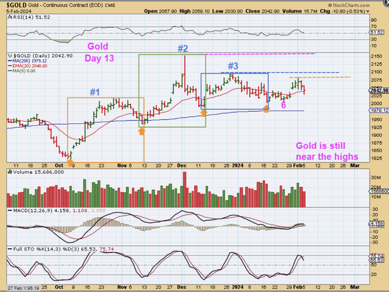 I wrote: GOLD is on its’ 4th daily cycle and this one should be weaker, left translated, and roll over into an eventual ICL. The ICL can come at the end of the 4th daily cycle, or Gold can also have 5 daily cycles, so I am monitoring it from the sidelines. The first 3 daily cycles were short and only roughly 25 days long, and this is day 13.