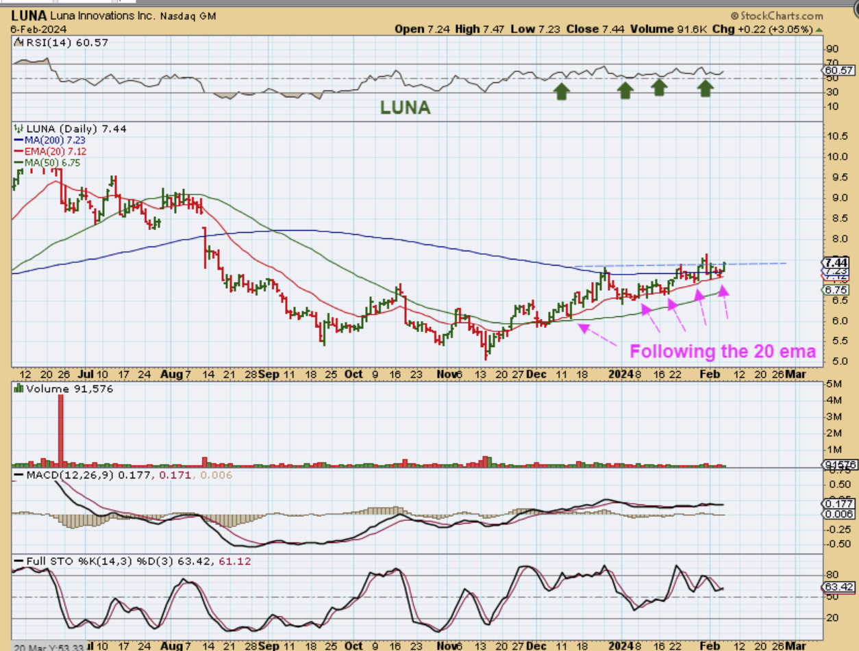 LUNA has been very choppy, but it is also chopping slightly higher along the 20ema. I am watching this one because I feel that it could breakout and it could make better or faster gains if it does.