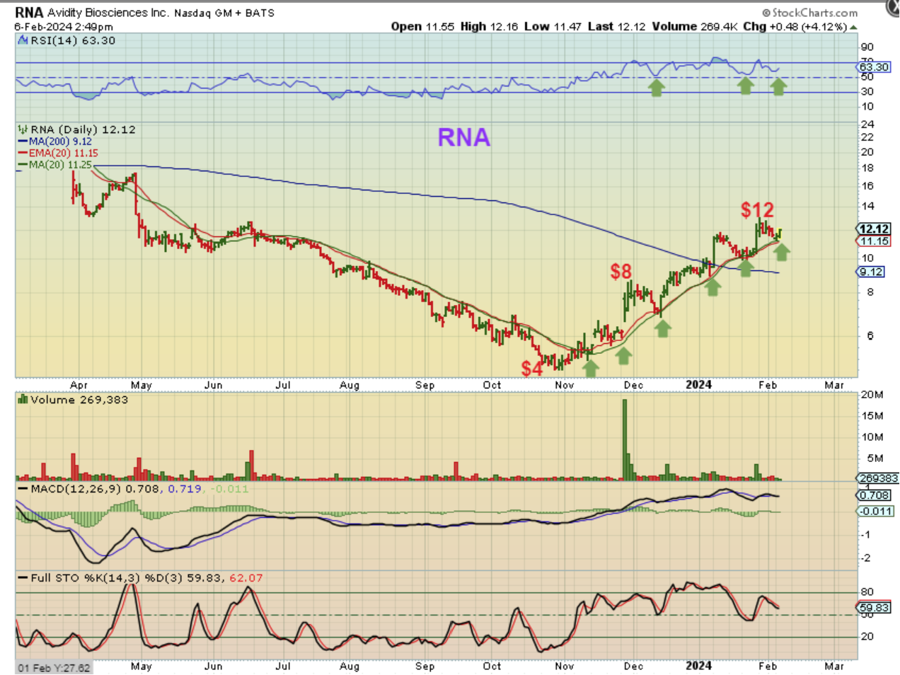 I have personally traded RNA, but I never put it in the reports, because it seemed so choppy. It has now formed a fairly reliable pattern though. The pattern is this…