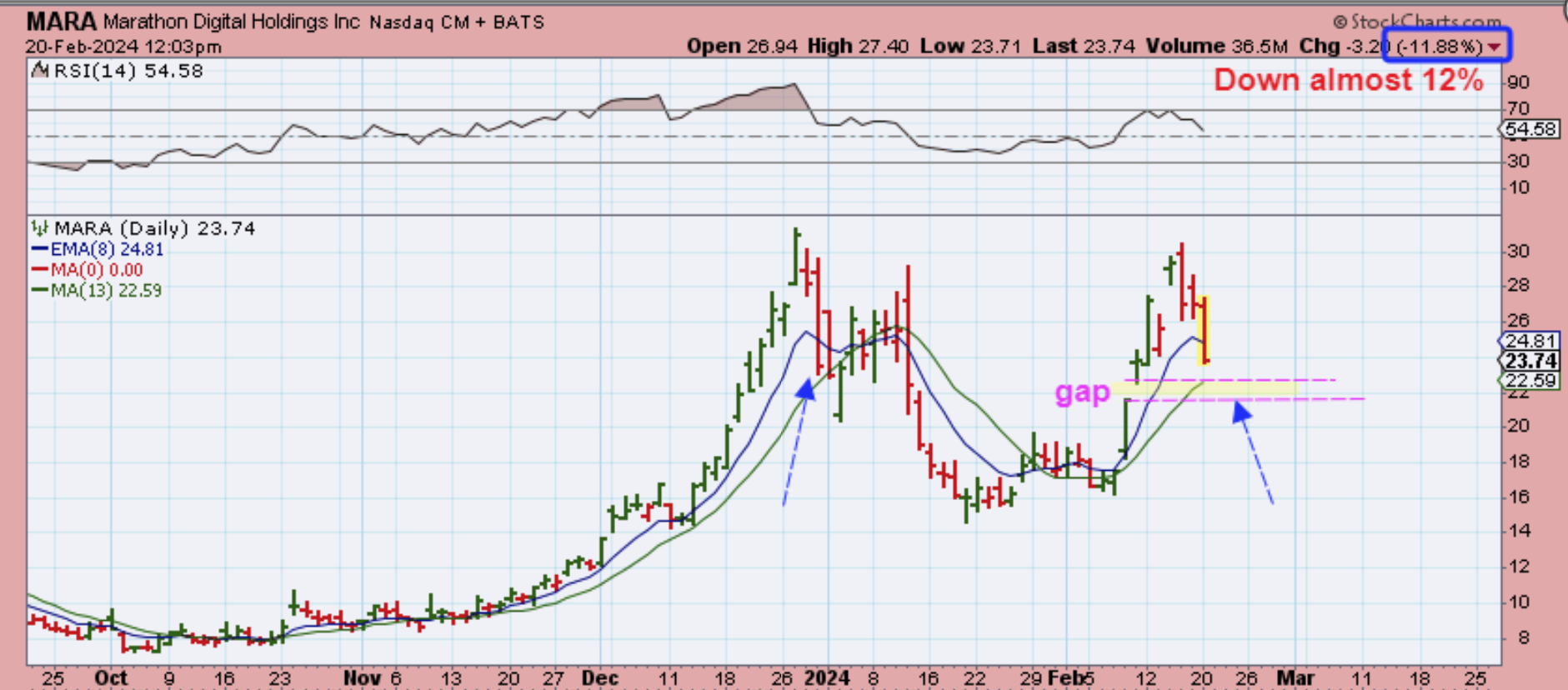 MARA dropped sharply by 12% and I thought that it might fill that gap at $22, but…