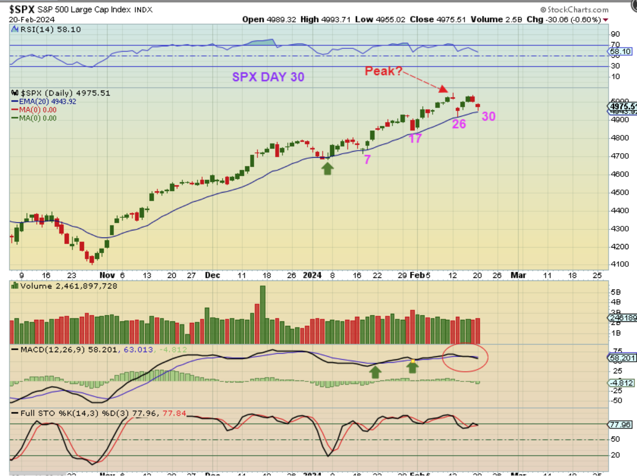 So we have our set ups as mentioned in the reports and we have the release of the Fed Minutes, so from there we’ll see how things play out after 2 p.m. January 30 saw the SPX drop (day 17) to the 20ema. It also saw the USD spike and Gold & Silver dropped, so unless they discussed rate cuts or low inflation in a predominant way, we may get a repeat of that later today, but you can still…Enjoy your Wednesday trading!