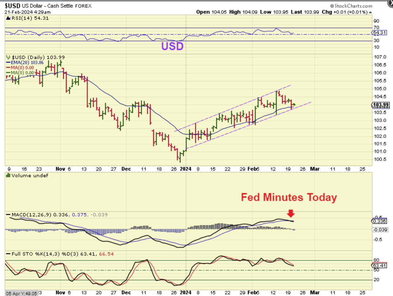 This is where the Fed Minutes could really move things. The USD and Precious Metals: