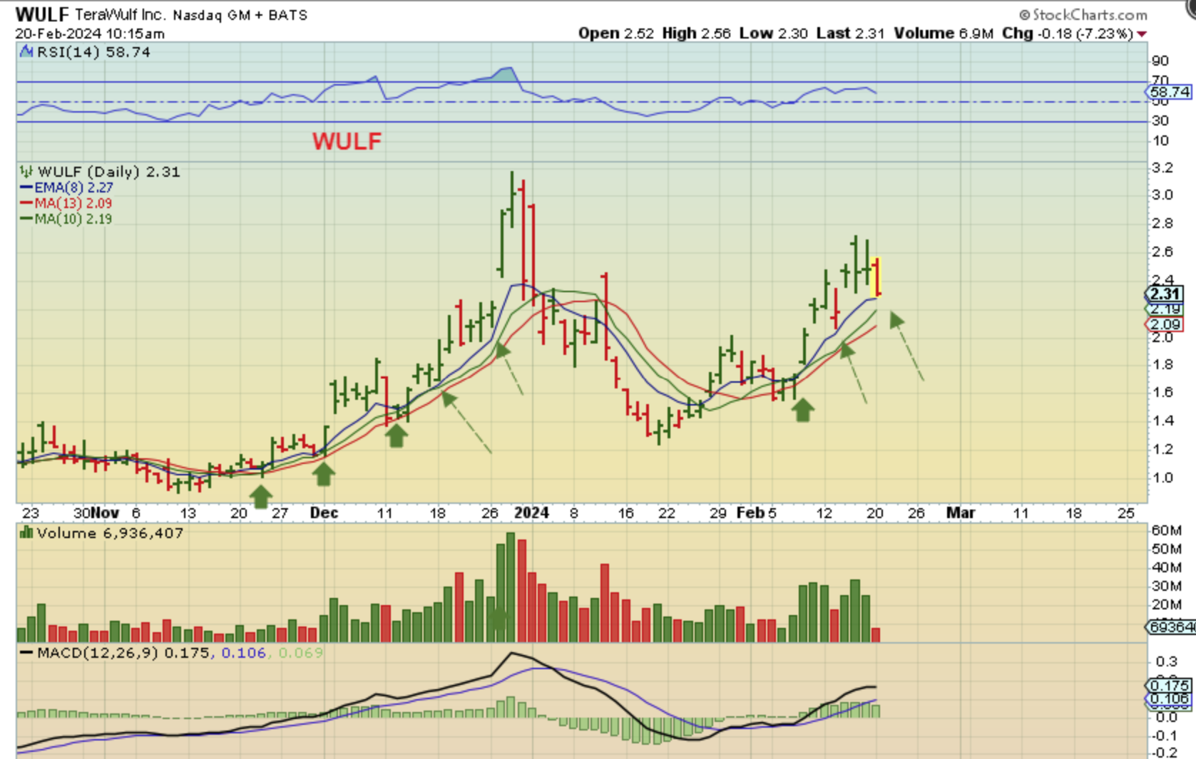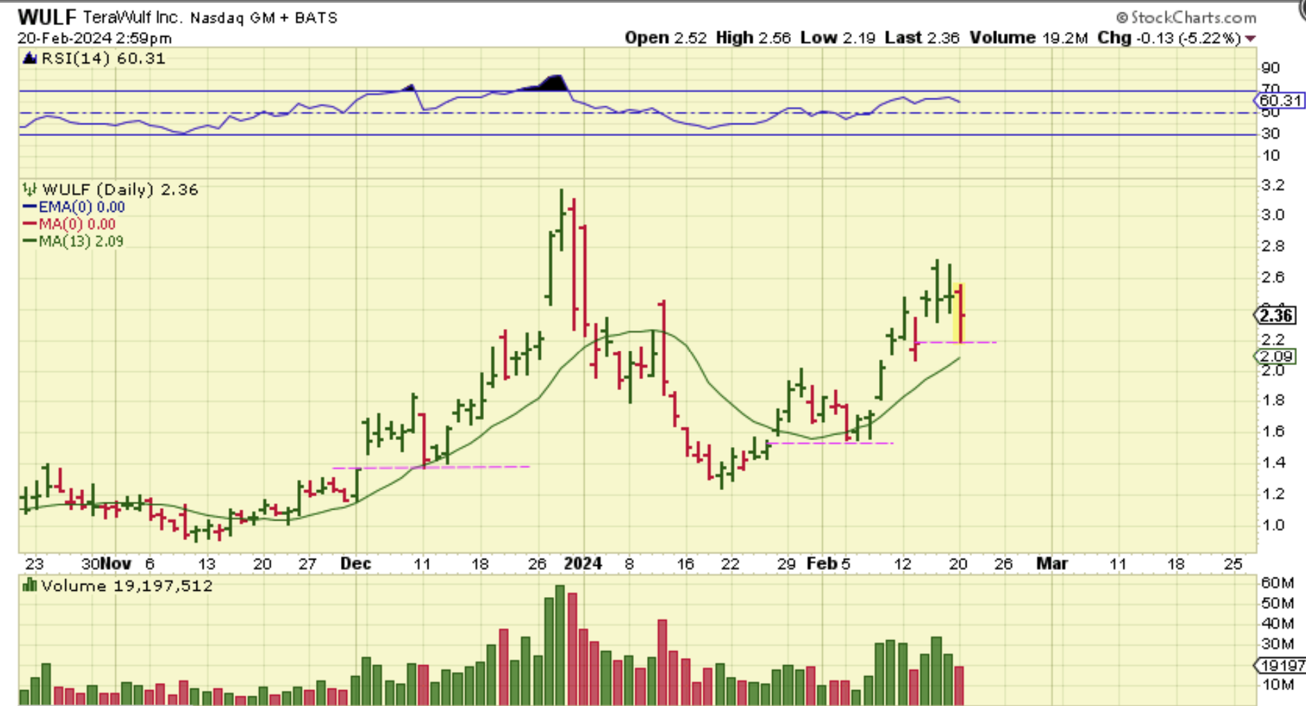 WULF dropped 7.23% in the first hour also. I grabbed this because these all rode the blue line up on the last run, so maybe it would hold & bounce here?