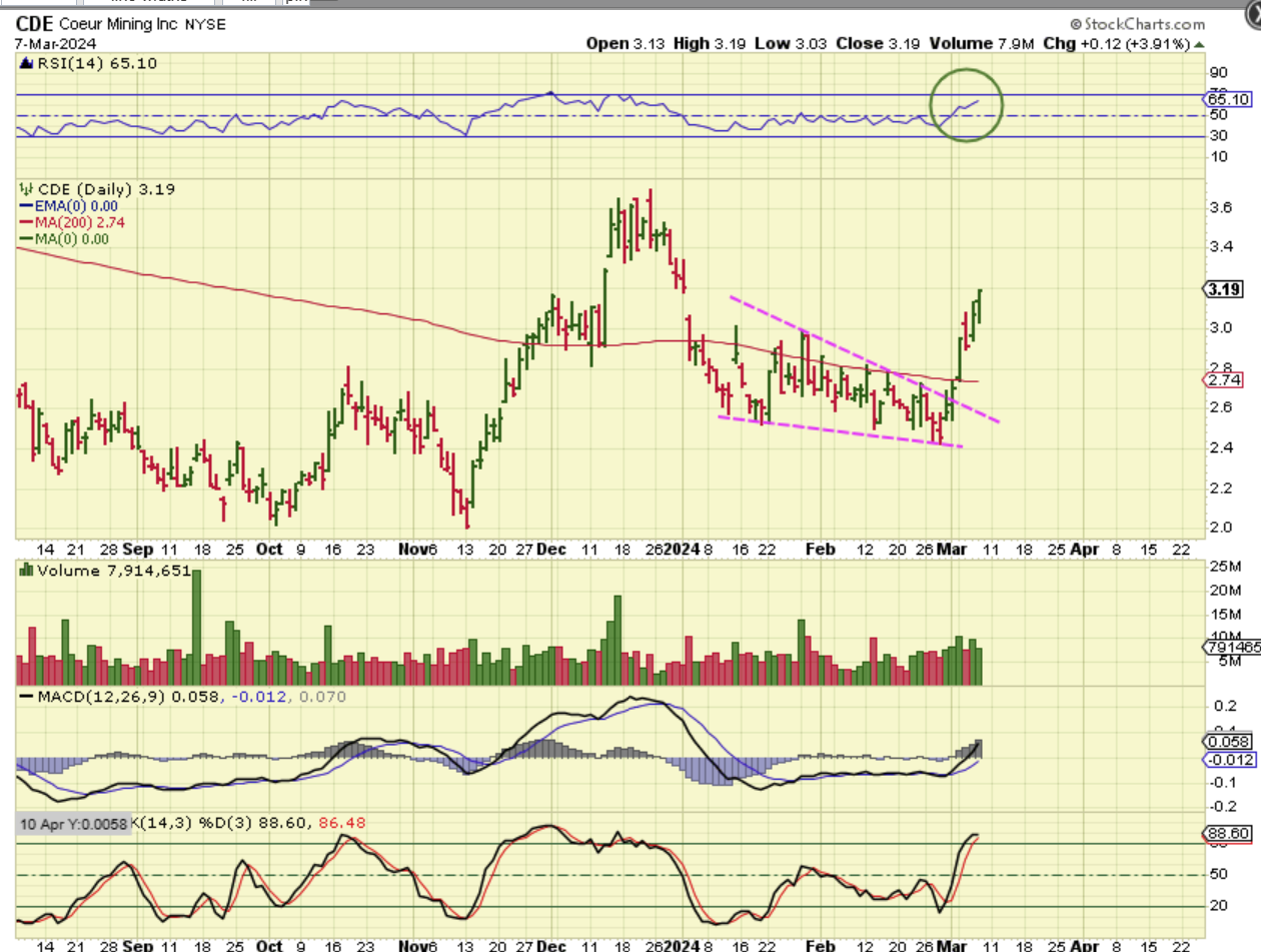CDE has made a strong move out of the lows, with 6 days of the rally.