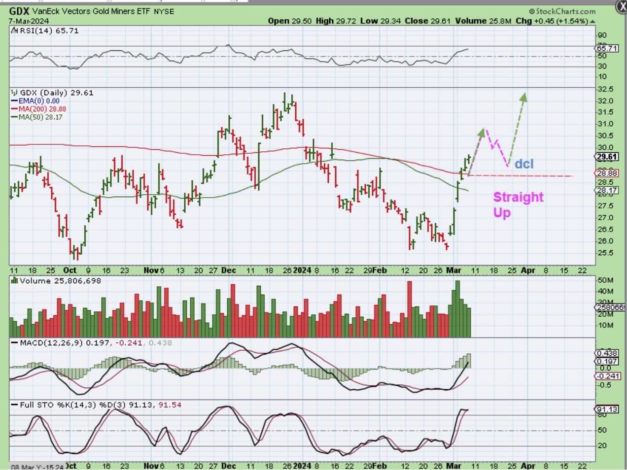 GDX – The miners should eventually pull back into a dcl, and we want to be ready to buy that dip.