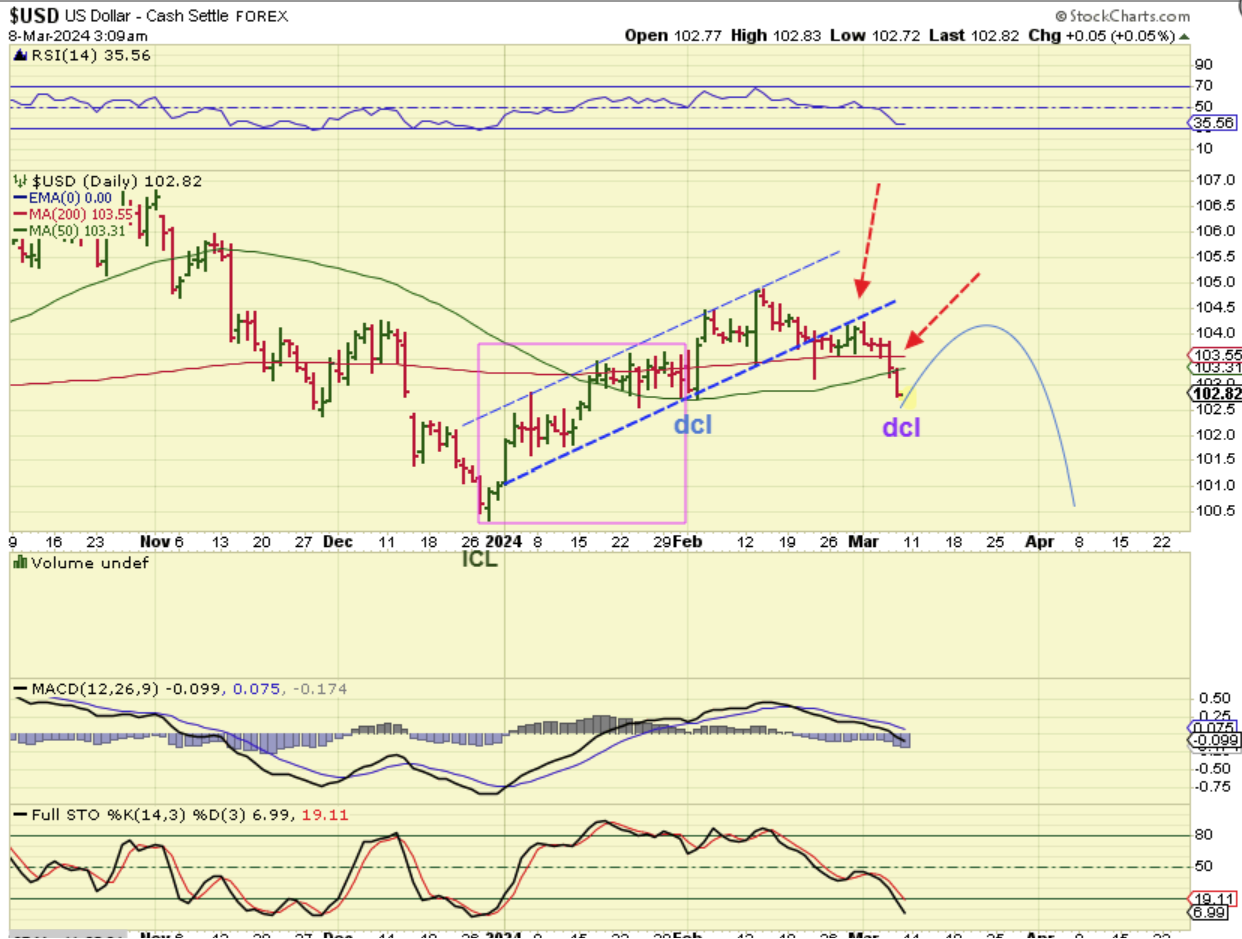 3. Timewise, I do now think that we may be close to a DCL and a bounce, and if we are, Gold may dip into a dcl with the USD bounce.