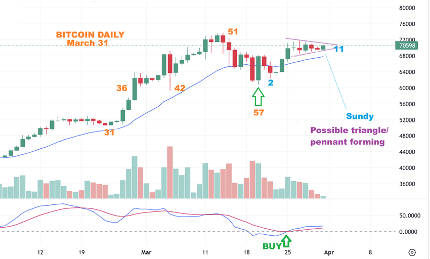 The Bulls are everywhere, and they are running strong! Yes, we will see down days and dips along the way, but surprises are often to the upside, so you do want to hold positions. The size of your basket of Miners, if you own one, depends on you, but I added to mine last week. I’m looking forward to seeing how next week plays out. Have a great Sunday, thanks for being here with me as always, and Bitcoin is below.