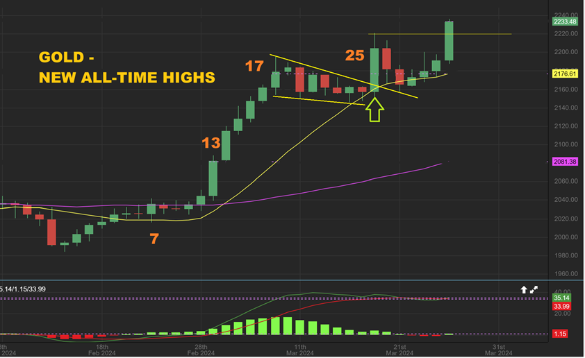 GOLD DAILY- Gold surged higher on Thursday and we have a breakout to new all time highs. This is very bullish, and…