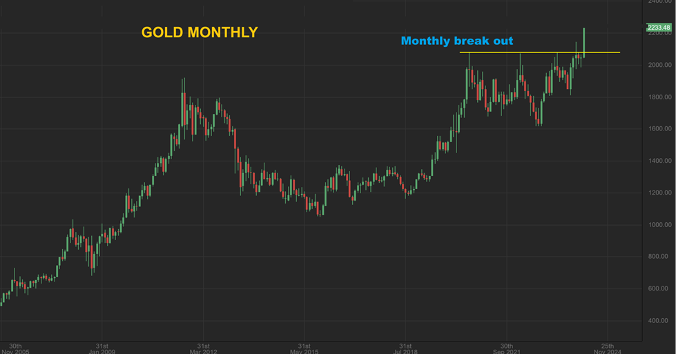 Since last week was the last day of the Month, The GOLD MONTHLY Chart is also a very clear, very bullish break out to new all-time monthly highs.  It closed at the highs, so this is just a nice bullish development.