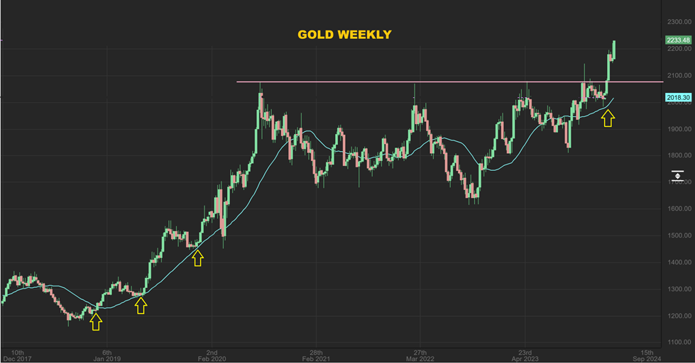 GOLD WEEKLY- That gives us a VERY CLEAR bullish breakout on the weekly charts too. I had been pointing to the blue line as an area that an ICL should form, and after we saw that ICL, Gold exploded higher. Gold did not fail to hold the highs again, so I would imagine that This is attracting attention and…