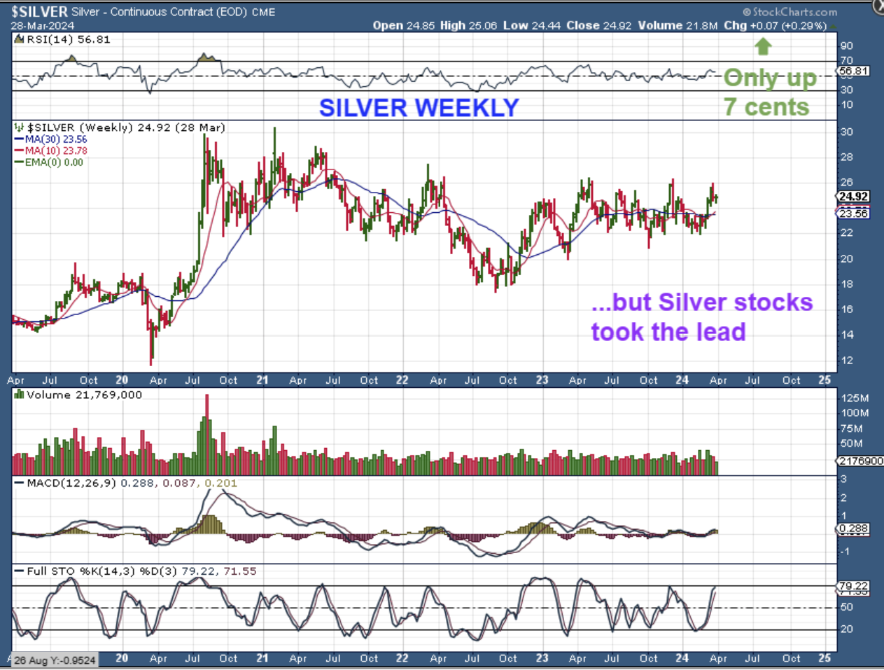 So my point is that even though Silver was only up 7 cents last week, Buying Silver stocks has paid off.