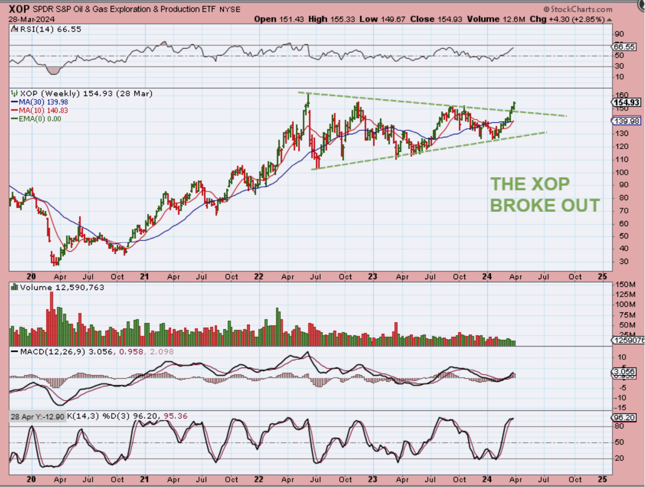 XOP WEEKLY–  Oil stocks were able to break out from that triangle that I have been pointing out for a while. This is bullish for this sector.