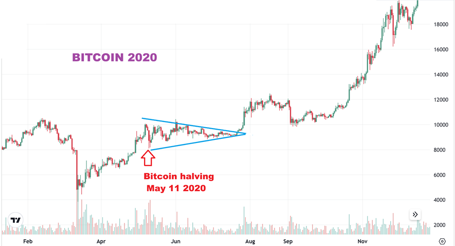 This arrow is Bitcoin at May 11, 2020. THAT is the date of the last halving. I just want to post this chart, because I have had people tell me that Bitcoin crashed with the halving, I have had others say that it immediately rallied after the halving. So why not look at a chart and see what really happened?