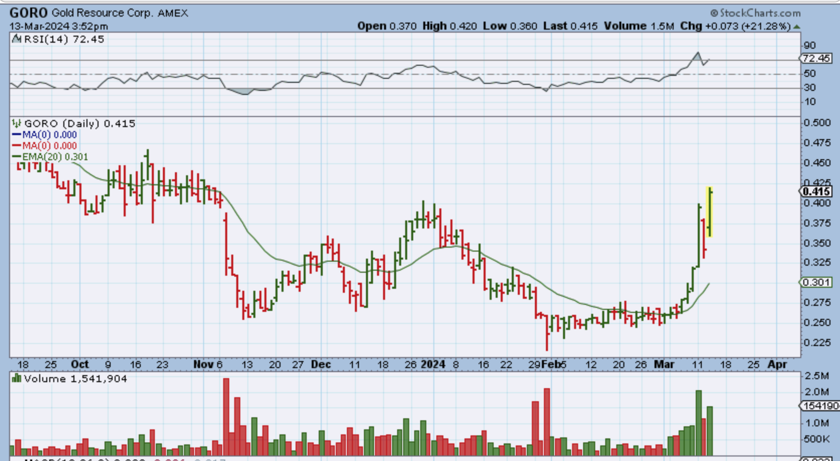GORO dropped 14% on Tuesday and I wouldn’t blame anyone that sold it thinking that it could drop right back to the lows, but surprises to the upside came in. GORO was up over 21% yesterday.