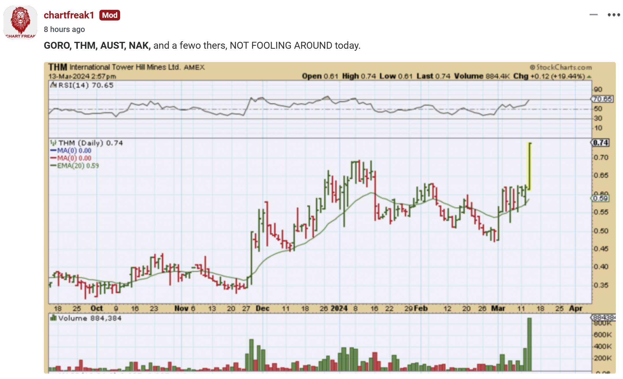 With Wednesdays push higher, many Miners ran up and then quite a few sold off a bit into the final hour. I did notice some big moves too, such as GORO, NAK, THM, etc, so I mentioned that with this post.