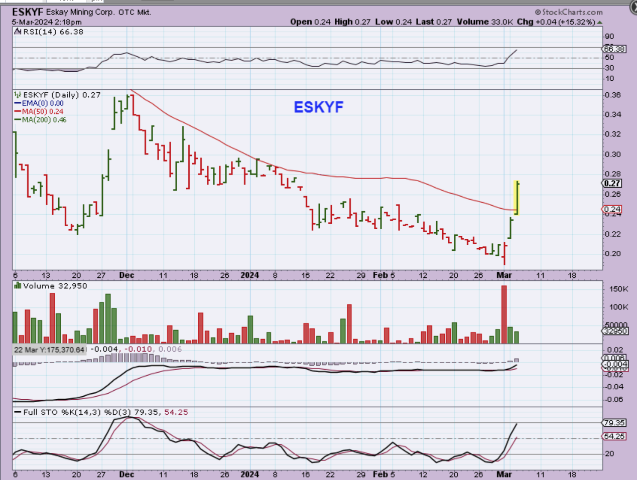 You also can buy a lagger , because they are still moving up and off of the lows. ESKYF Popped yesterday and held the gains. It may pull back today, so I’m not saying to buy this one now, I am just saying that on a red day, some of the laggers may continue to rise. Yesterday my basket was both red & green, with GFI & HMY staying green for example.