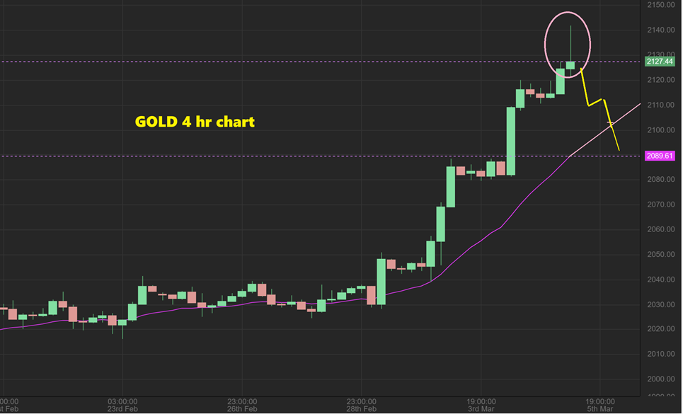 GOLD rallied up yesterday and then started to sell off, so I grabbed this 4 hr chart, which had a reversal candle on top. I drew that it could pullback, but it actually stated to chop sideways. I’ll give you the live shot in the morning…