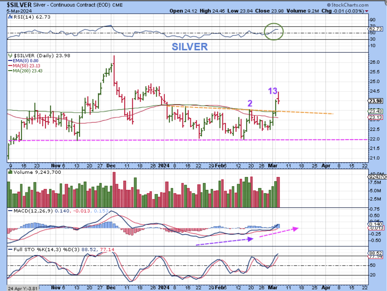 So in conclusion I’ll just say that I personally think that we will see the daily cycles become stronger in this Intermediate Cycle for the Precious metals, and I do think that buying power will pressure price into rising higher. I feel that we will see what we used to see, and that was the day 14 or so dip was actually a half cycle dip, and then price ran up into a day 25 or so peak, with a milder dcl dip to follow. Why do I feel that way? As I pointed out in past reports, GOLD was hanging around at the highs and did not pull back much. We were due for an ICL, and it barely dropped, instead it put in a stealth ICL. THAT is a sign of Golds strength to me, so if we saw that in the 4th daily cycle, what should we see coming out of an ICL? I just have to believe that it will be strength. I think you should own Miners.