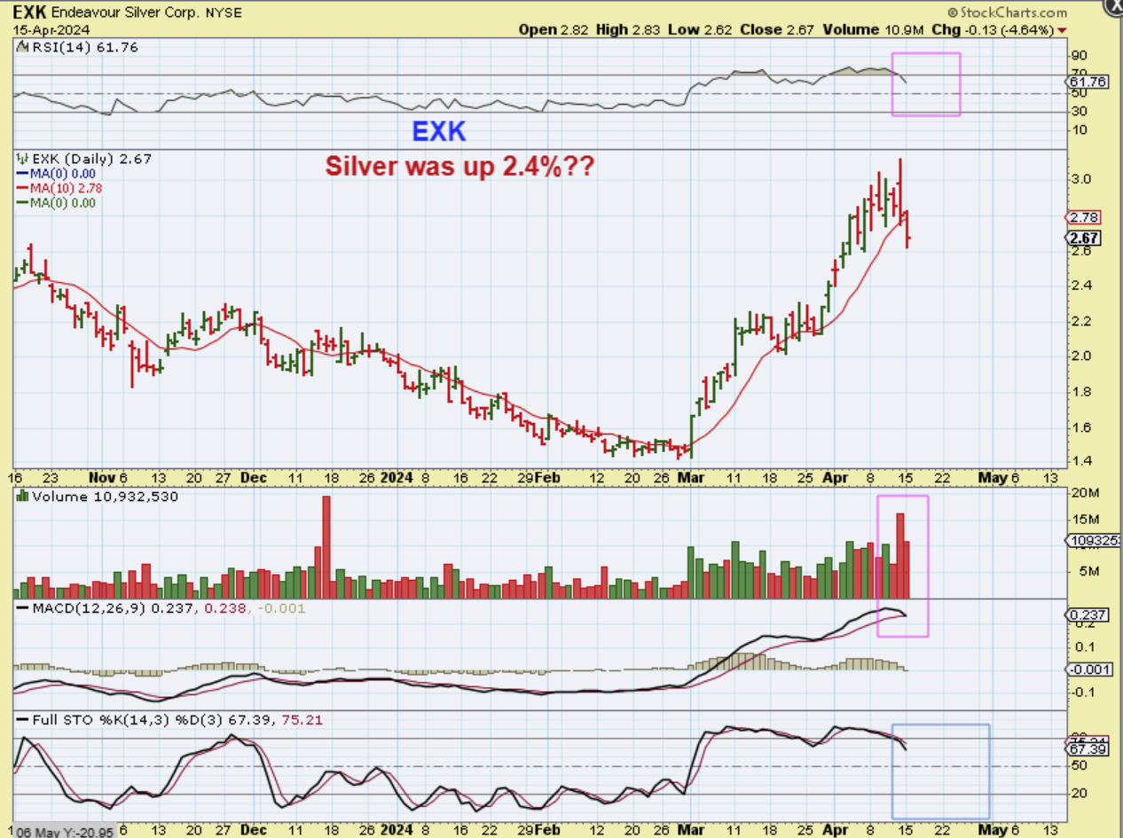 EXK – Was Silver up 2.4%? Miners are being sold off.