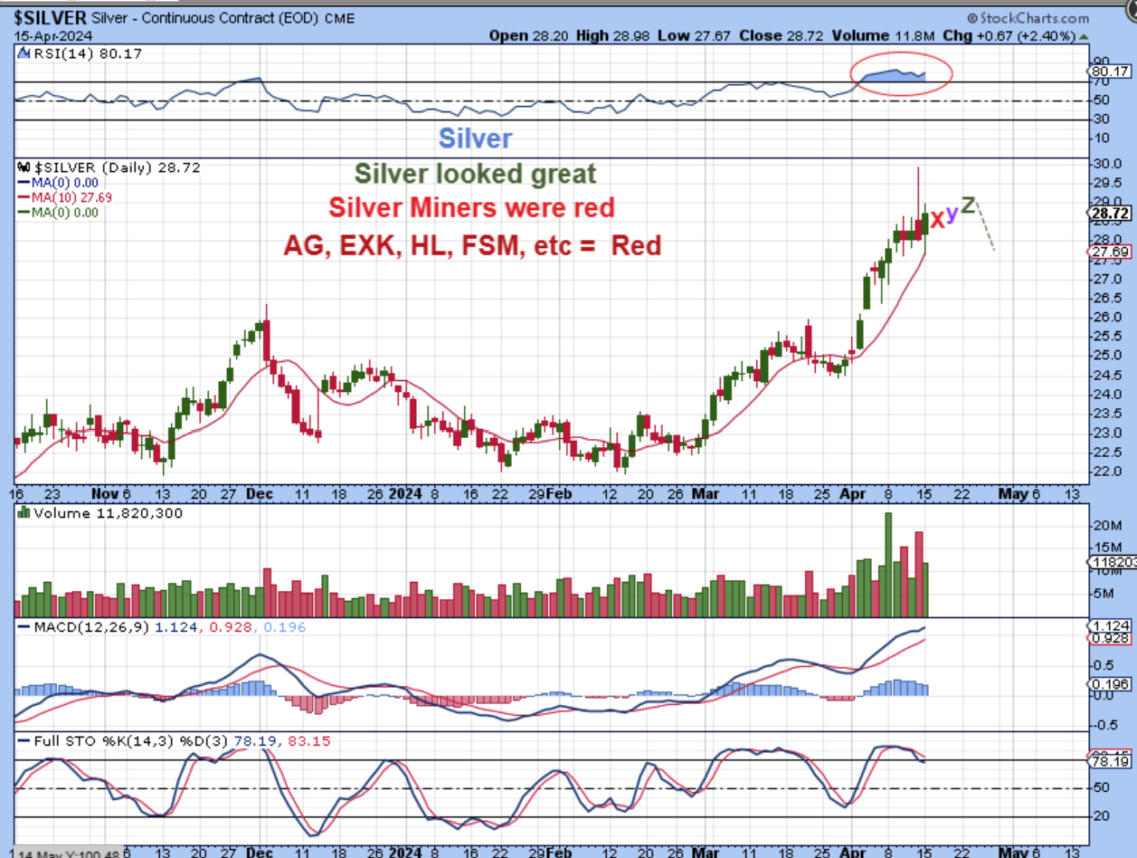 GOLD & SILVER actually really popped on Monday, right off of the 10sma, but you’ll see that the Silver stocks and Gold Miners didn’t follow.