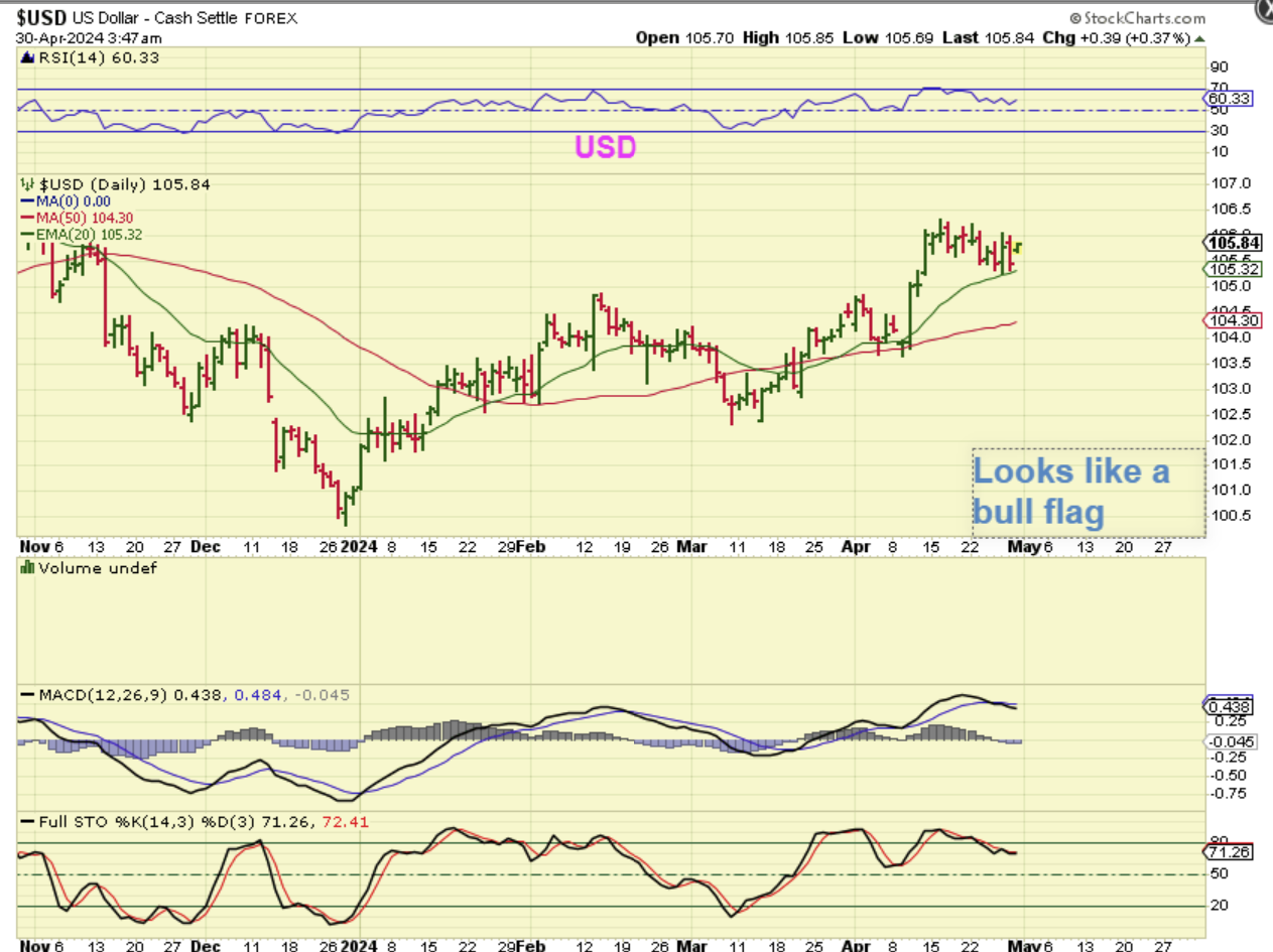 The USD basically looks like a bull flag dip down to the 20ema.