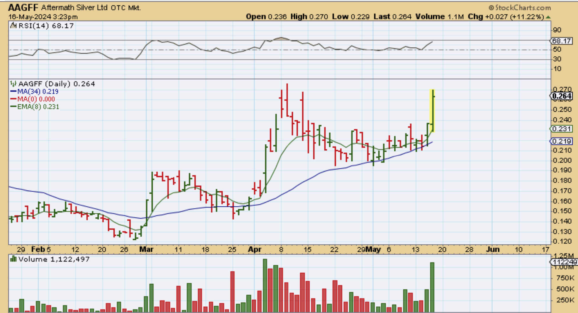 AAGFF was up 11% by the final hour and it closed up 13%, so the smaller explorers have been seeing some love recently.