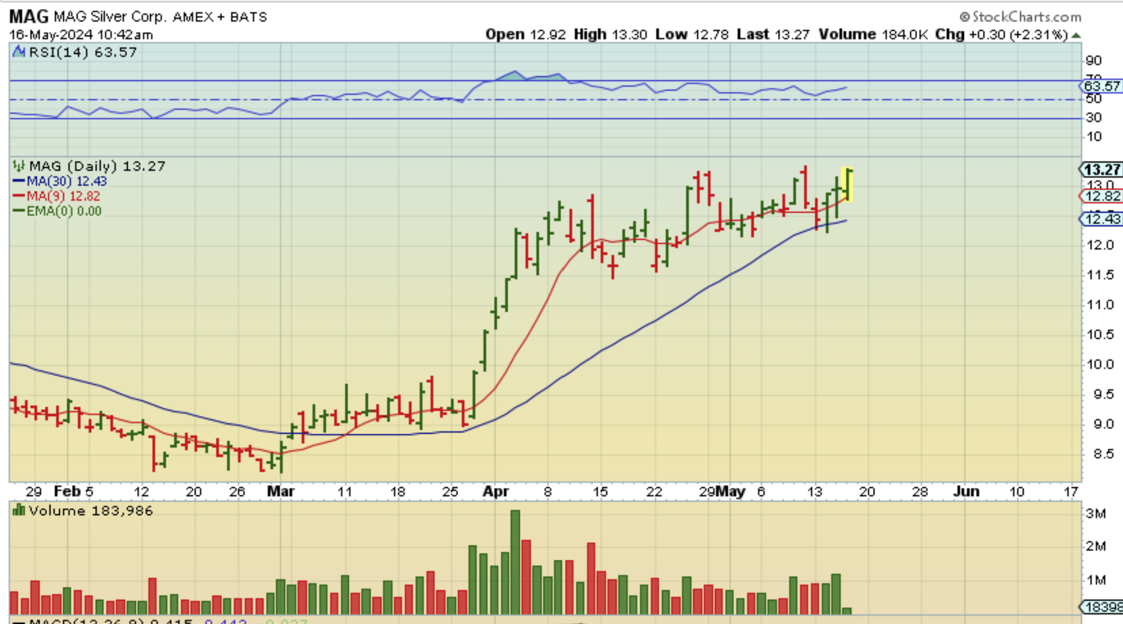 I also posted that MAG, EXK, HL, and a few other silver stocks were turning green while Silver was red. I like the way this sector is acting, as it continues to show bullish surprise to the upside.