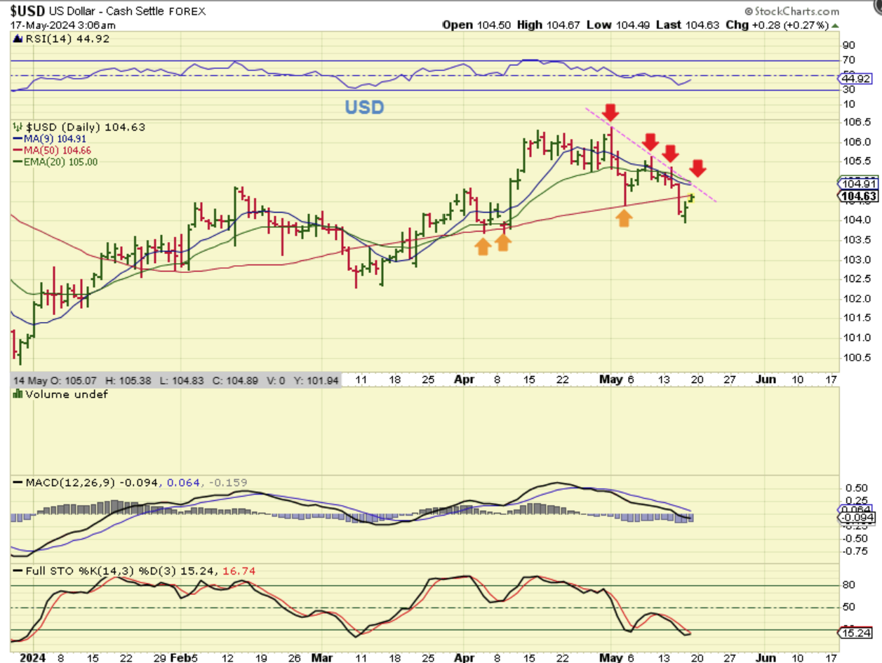 THE USD has been breaking down and it sliced through the 50sma. It is trying to bounce back, but it does have overhead resistance.
