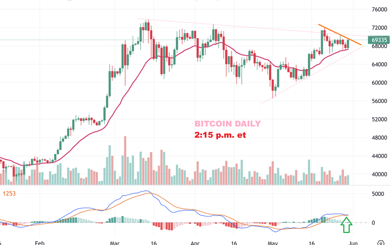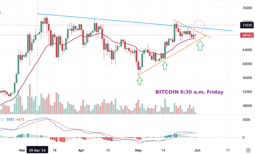 JUST TO KEEP IT SIMPLE: This is Bitcoin at 6:30 a.m. Today, and I don’t think that the Crypto related stocks will run until this breaks out. We have several pop & drops to that area lately.