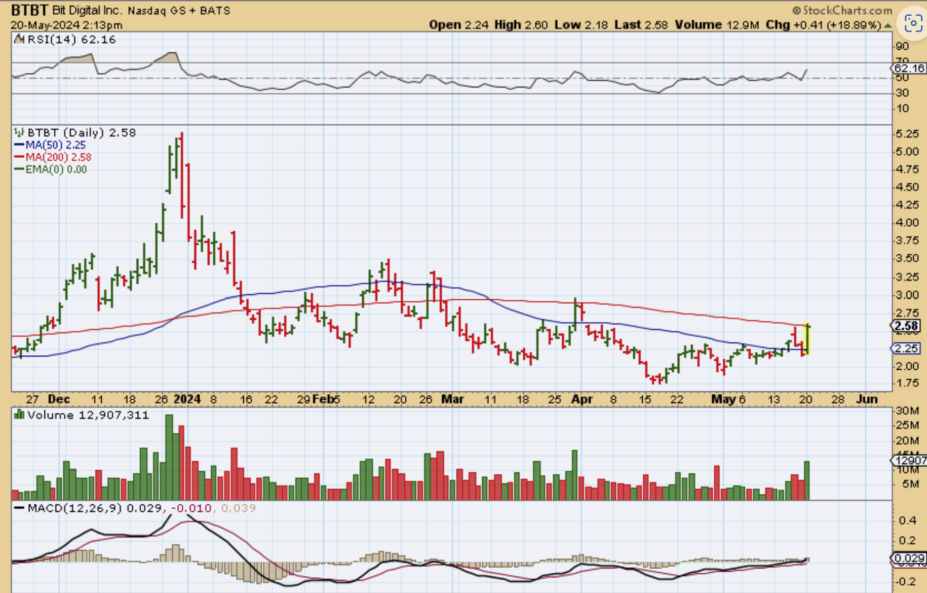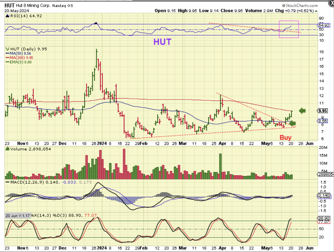 HUT was a buy breaking above the 50sma, and now it is pressing against the 200sma. You can buy it if it ‘crawls’ along the underside of the 200sma, or if it breaks out.