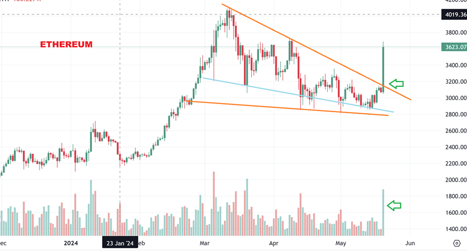 ETHEREUM joined the crypto race with a big burst yesterday too.