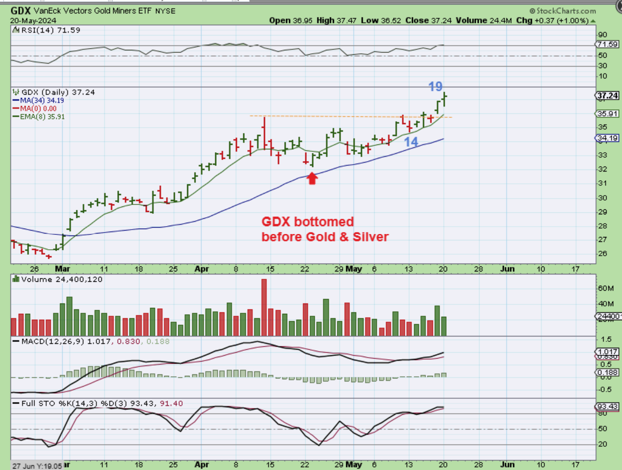 “If we see a breakout, that should identify a dcl.” Using Gold triangles in the past, I then started my count from that apex…so here it would be around day 56.