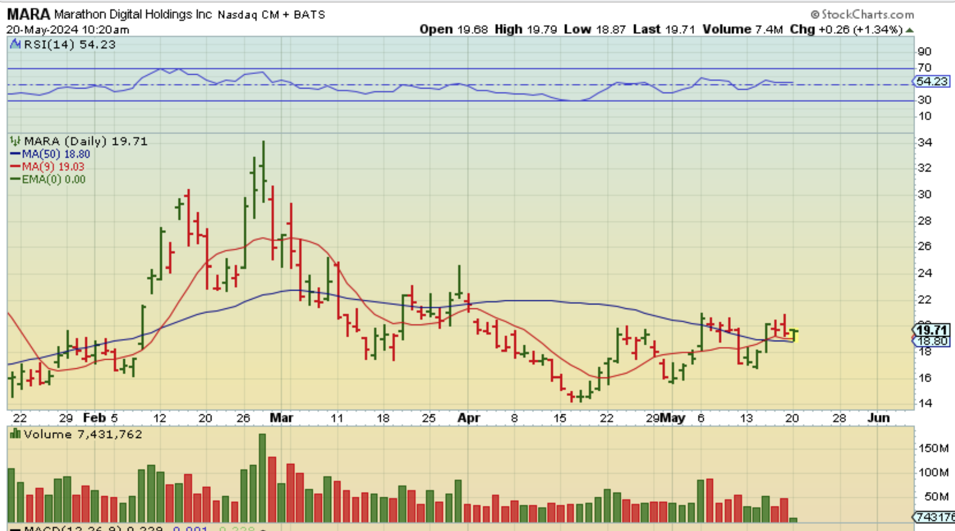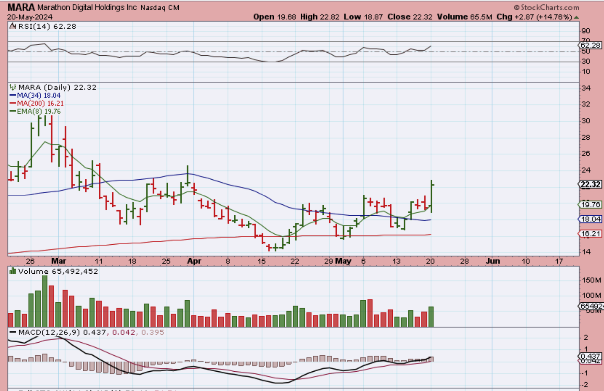 MARA – An hour later MARA is almost at $22, now up 12%.