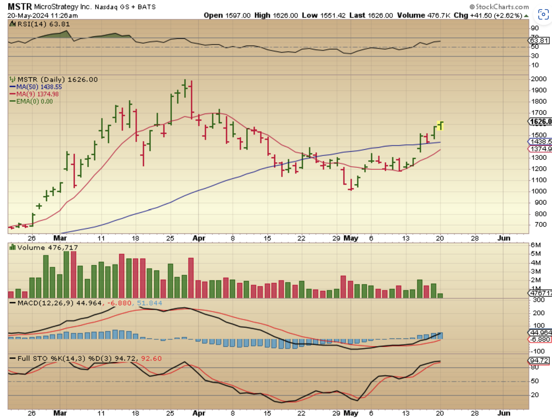 MSTR is an expensive crypro-related stock, but just take a glance at the left side of the chart. You can see only part of this years run, but that run was from $400 in January to $2000 in March. Buying 5 shares, or 10 shares, or whatever your account can afford reasonably could pay off nicely over time. I posted this chart in the live commenting area yesterday as turning from Red to Green with buyers. It closed up 9%.