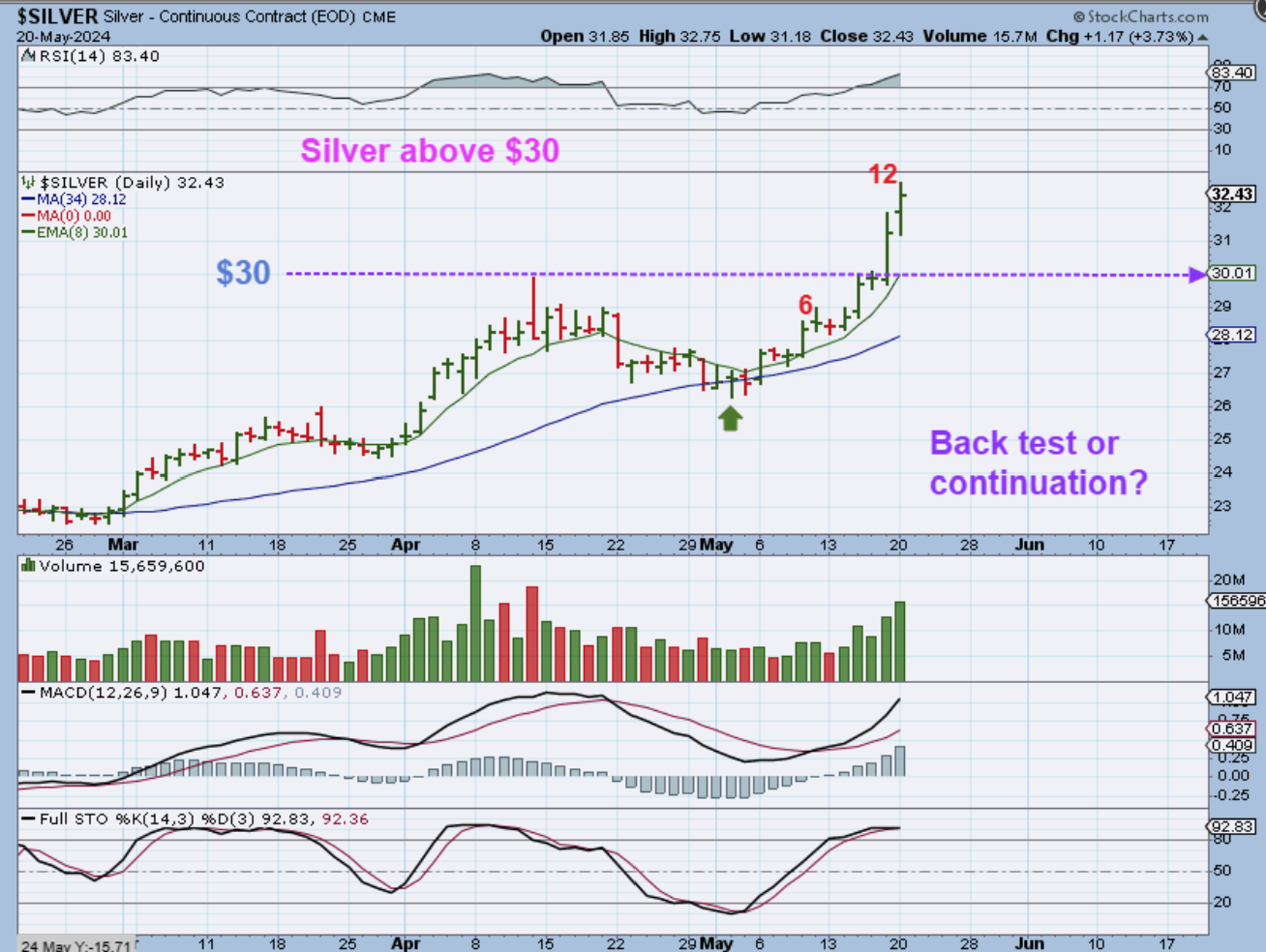 SILVER looks very strong after breaking out above that key $30 area. It may have been heavily shorted there, as many expected it to fall.