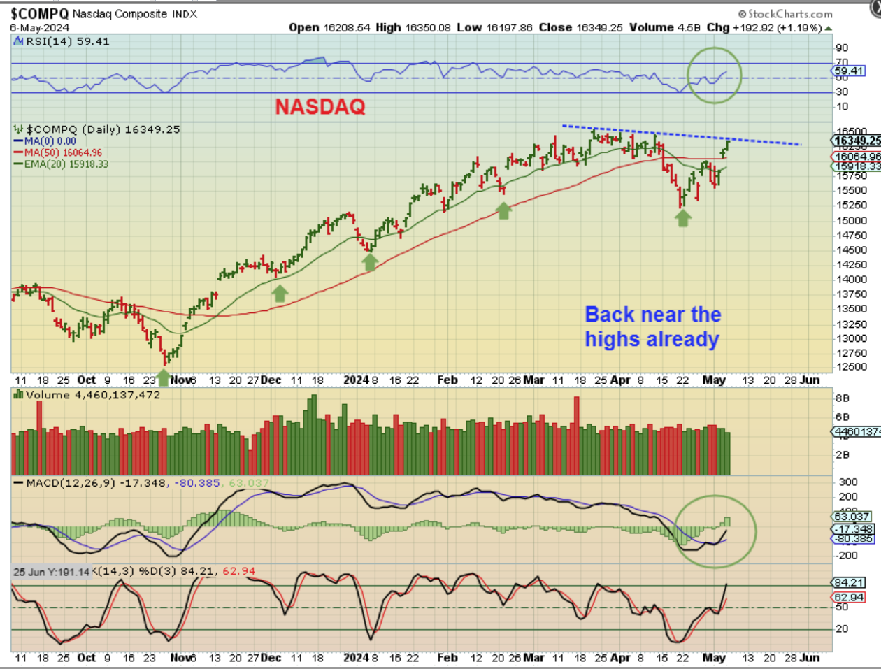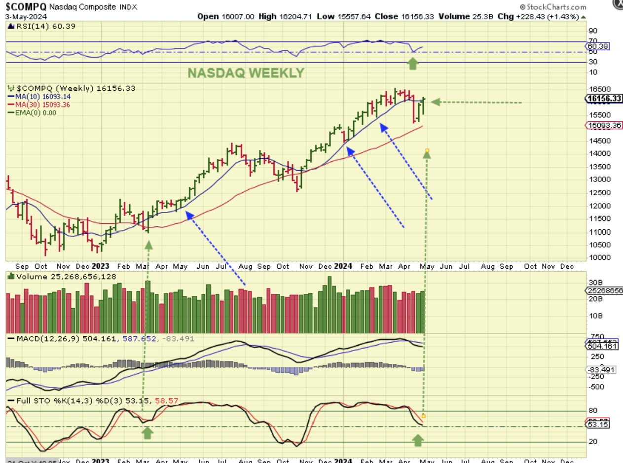 IN THE WEEKEND REPORT, THE NASDAQ HAD REGAINED THE 10 WEEK MA (Bullish). I said…
