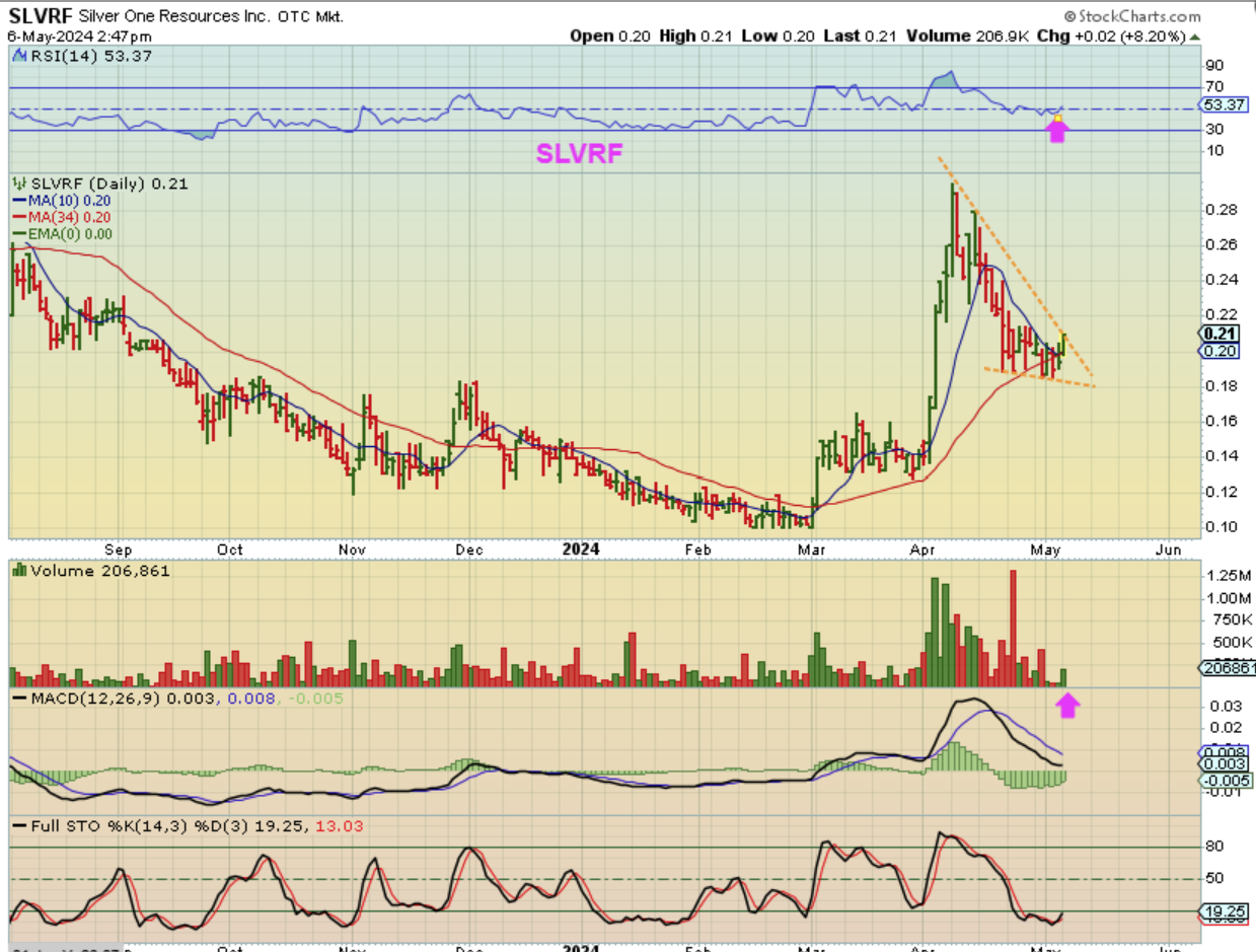 SLVRF also landed at a support area, the 34 sma, and that is where it turned higher in March.