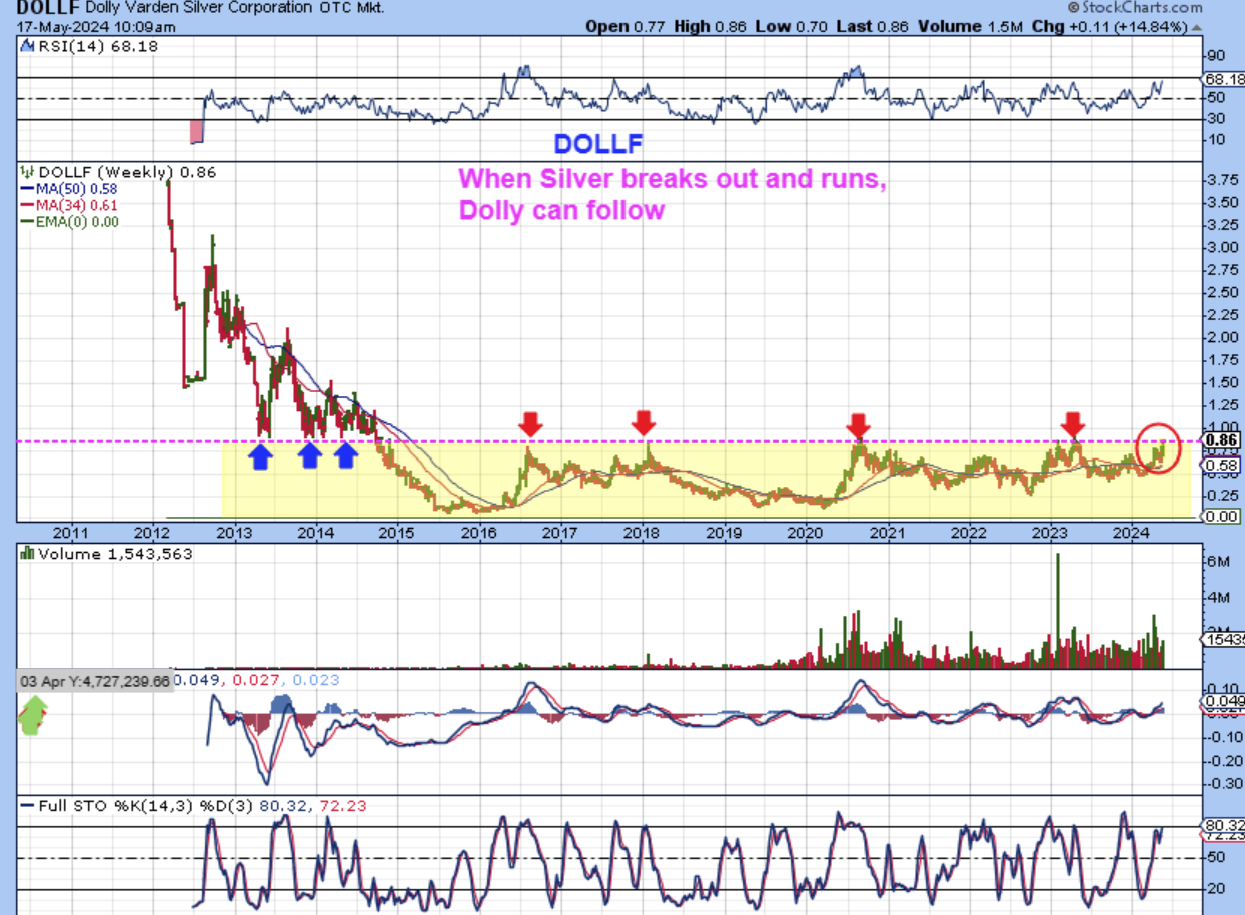 DOLLF closed up 17.58 % for the week (this chart was captured on Friday at 10 a.m., so it moved even higher on Friday. You can see that when you step back, this also has a LONG Base, and a break from these bases can often lead to buyers paying attention and jumping in. The base is an accumulation phase. Read the chart please.