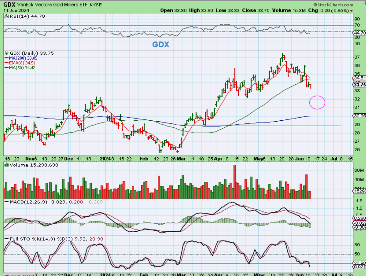Gold is due for a dcl and that low could be 5-10 days away, so I’ve been out of Miners for a while thinking that this Intermediate Cycle has likely peaked. Notice how close Gold is to making a ‘failed Daily Cycle’, by breaking below the last DCL. If that happens, it starts the decent into an ICL Over time.