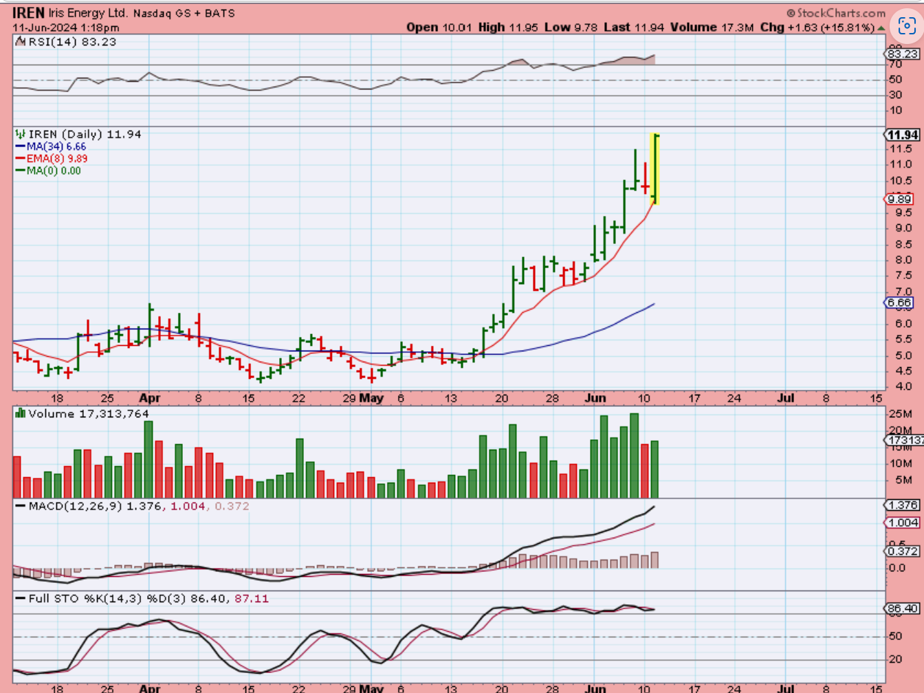 IREN by midday was up 15% with almost ‘all day volume’. I sold 1/3 of my new position.