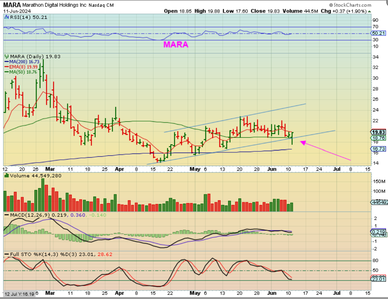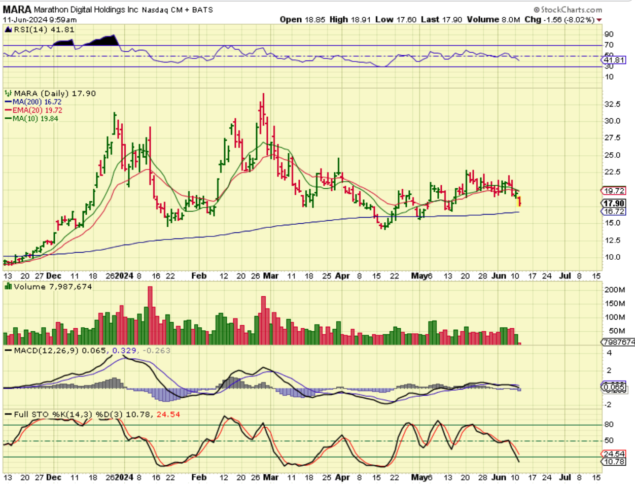 MARA lost and regained the 50sma, with Bitcoin still at the lows all day. Let’s go to intraday.