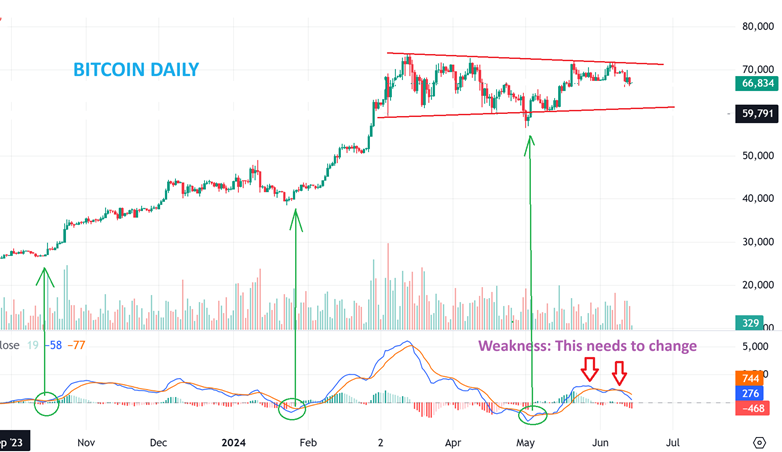So the Bulls remained in charge with the week of the Fed again, even though they have pushed off Rate Cuts. In early January there were talks of 3 cuts in 2024, but now its down to probably just 1 cut, and yet the markets continue to rally onward and upward. We are due for dips and drops into a dcl (in some cases it could be the ICL) and we want to buy those dips, especially if we get that ICL in the Precious Metals. Another rally to all-time highs should follow and the miners could finally break out and really pick up speed when they do. I’ll cover Bitcoin below, have a great weekend!