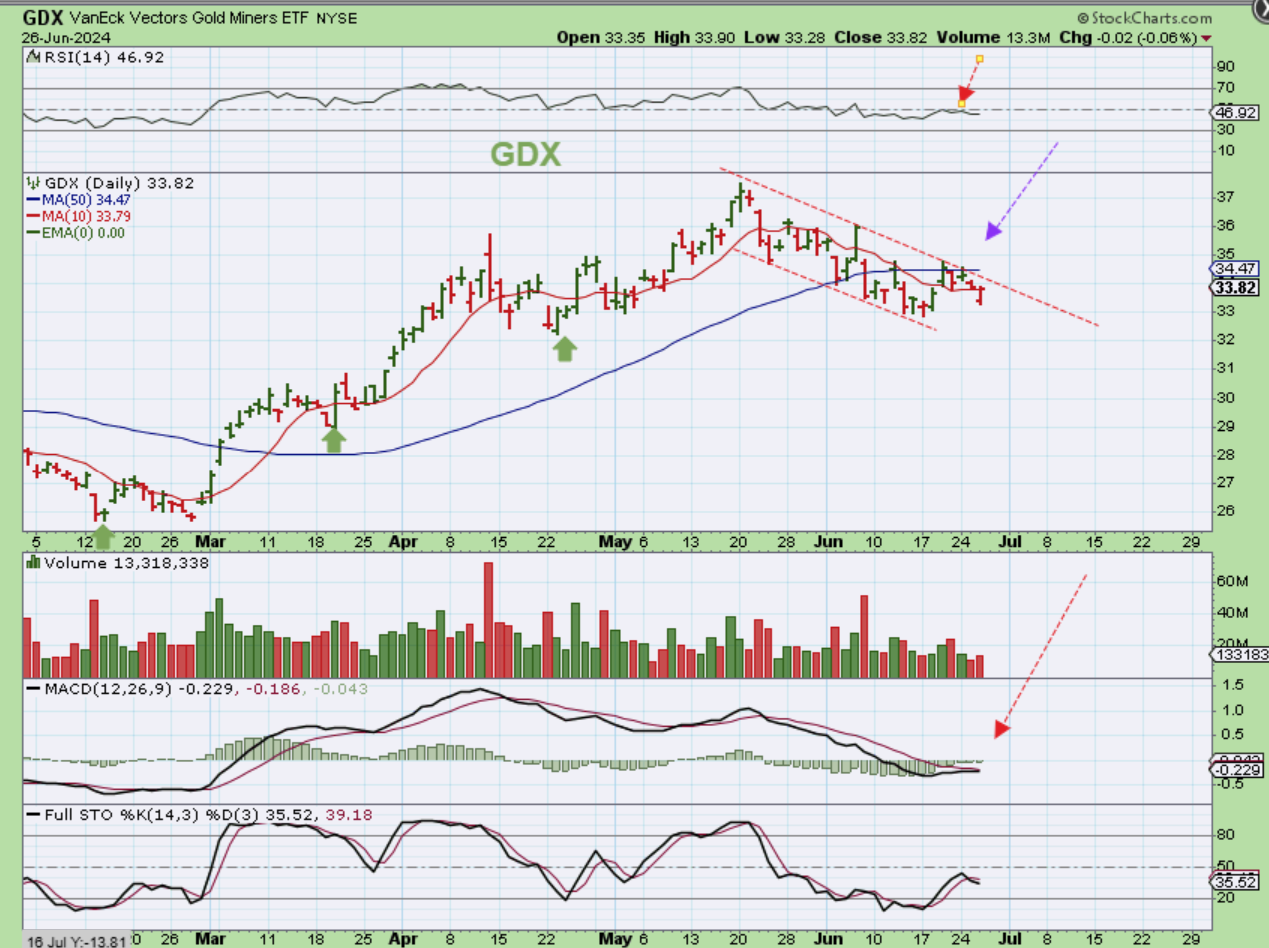 GDX lost the 50sma and has been struggling under that 50sma ever since. I would be surprised if the GDX ETF could get back over the 50sma. I expect more weakness.