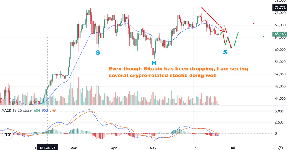 2. That said, I also want to look again at some Crypto-related stocks, because as you can see, this is dropping, but some cryptos look to be under accumulation, some are rallying, and some may be ready to breakout and follow.
