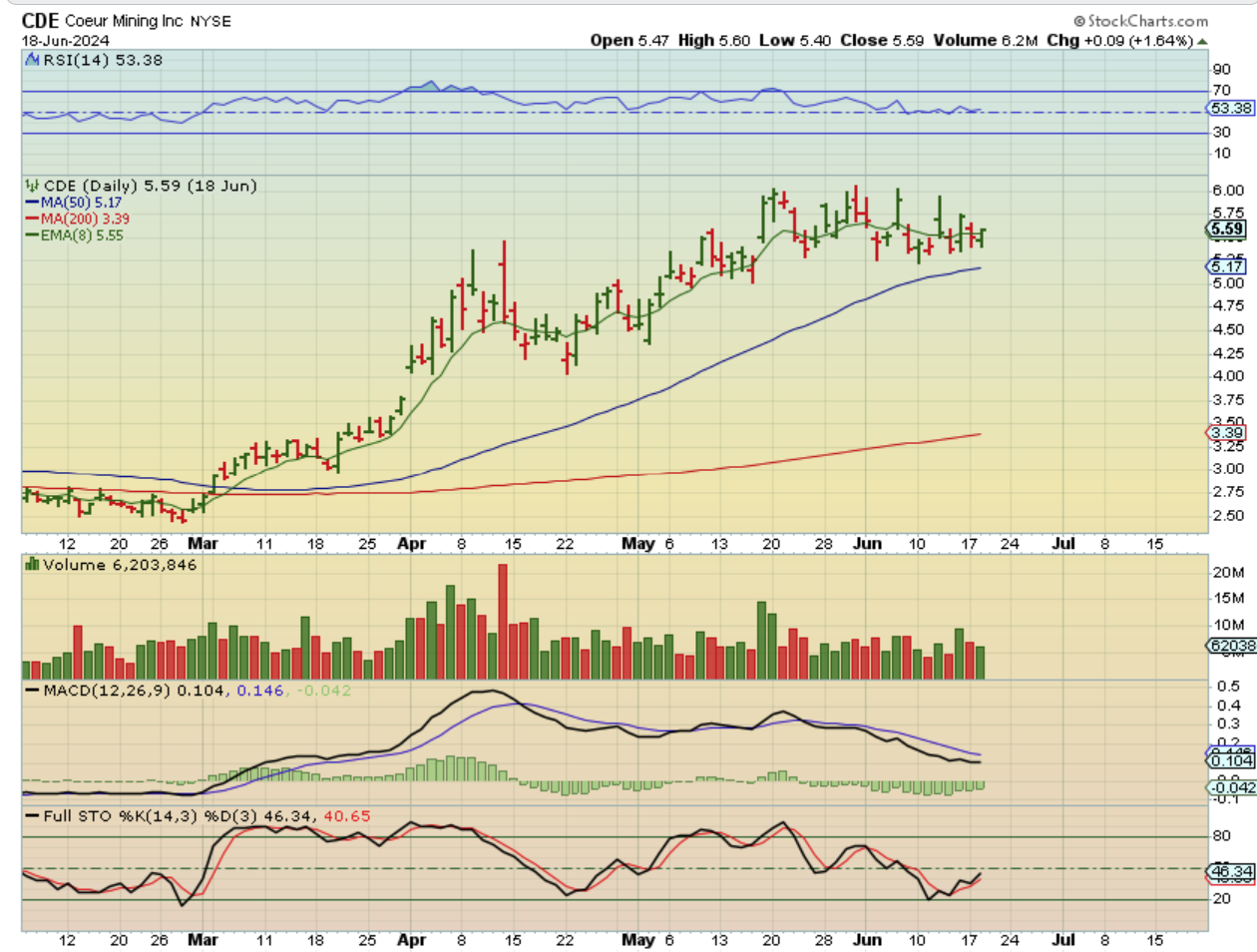 CDE has a very bullish look this late in the intermediate cycle, so SIlver stocks seem to be holding up well.