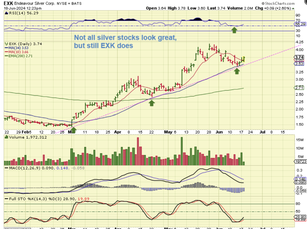 When I looked at SILVER starting to turn up this week, I also decided to run through my Silver miners, and a few look good (unlike when they used to sell off and drop like a rock).