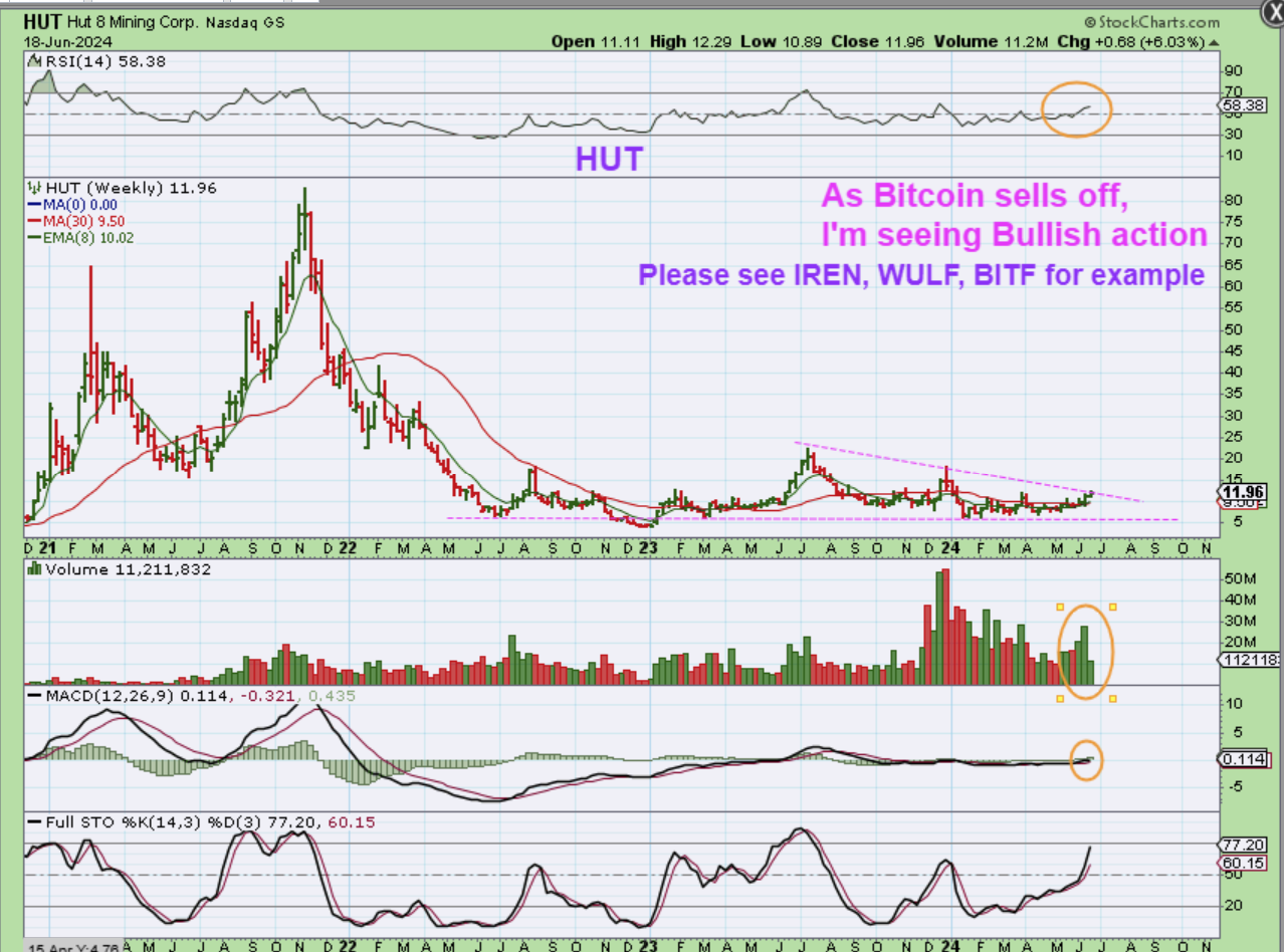 I showed HUT with this chart in Tuesdays report as also having broken out and back tested support. What do you think the weekly chart looks like?