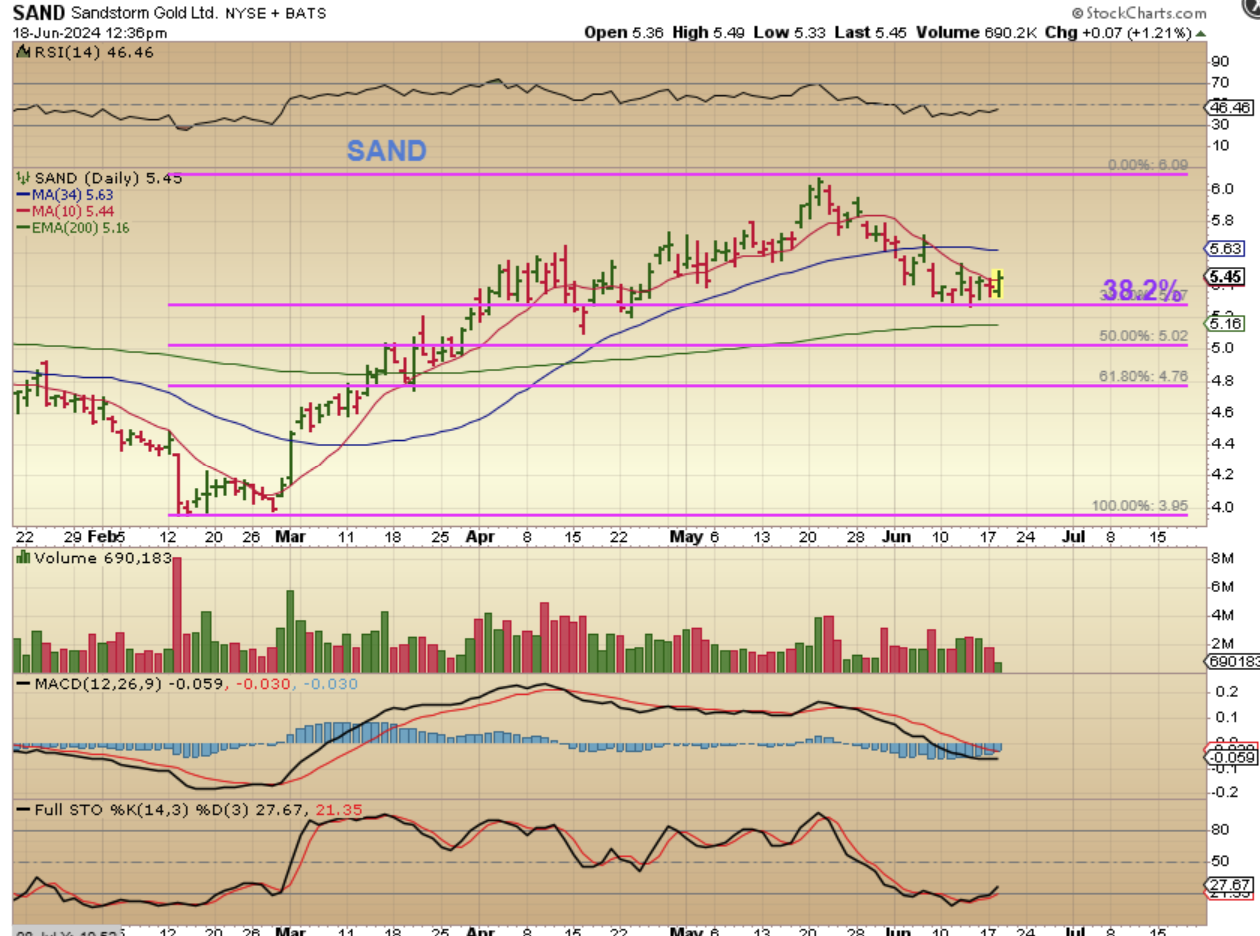 EXK, for example, is bullish. It sold down to the 34 sma again and reversed there. I don’t usually count a daily cycle for individual stocks, because they can vary A LOT, but if I did, EXK had a low on day 37 and this is a buy (with a stop).