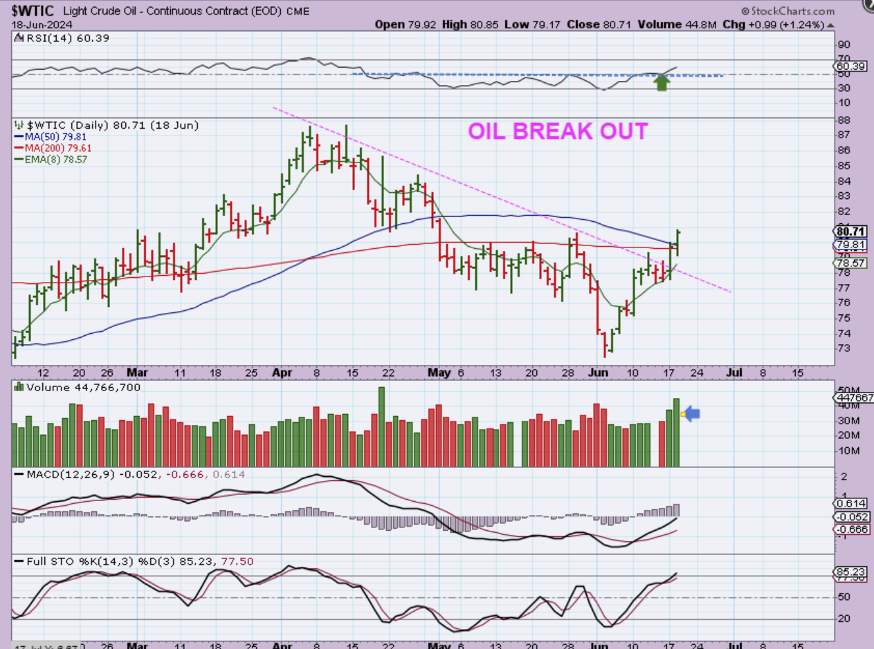 WTIC – Oil then broke above the 50sma, 200sma, and that downtrend. This really loos bullish for Oil, but I also mentioned something else that is interesting…