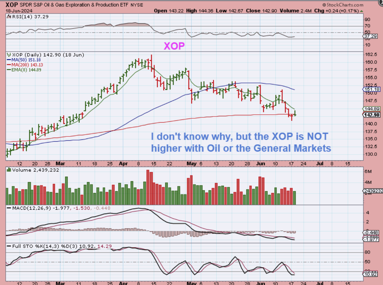 THE XOP is not higher with OILS surge or the General Markets surge, and that is a little puzzling.